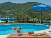 La proprietà è circondata da un ampio giardino con diverse aree esterne attrezzate. Inoltre, è a disposizione degli ospiti una piscina con una vista meravigliosa (9,55 x 4,50; profondità: 1,45; orario di apertura: maggio-settembre)