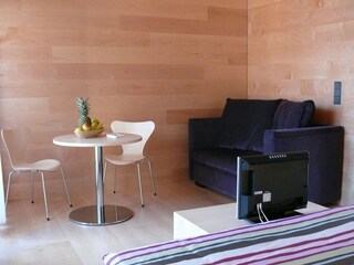L'appartamento Superior Pink Lady (33 m²) per 2-3 persone dispone di una spaziosa e luminosa zona notte e giorno con letto matrimoniale, un accogliente angolo salotto con tavolo e sedie e un divano letto estraibile; un...