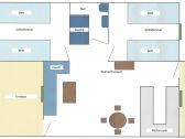 La casa ha in totale 3 stanze: 2 camere da letto con 2 letti ciascuna e un armadio a muro, un soggiorno/sala da pranzo con cucina. Qui trovi un tavolo da pranzo con 4 sedie, un...