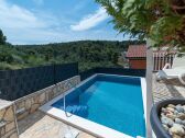 Economico alloggio a Mastrinka vicino Trogir, con 2 camere da letto e adatto per fino a 4 persone, con barbecue, parcheggio privato e vista mare.